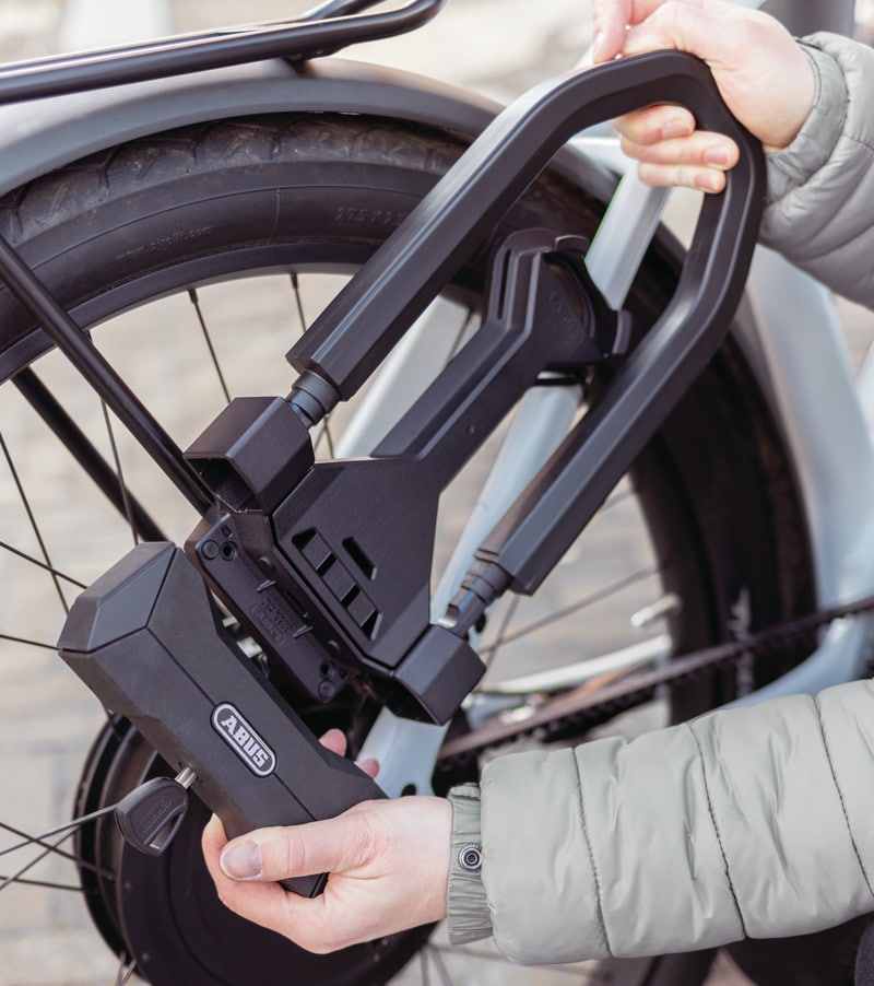 So sichert das äußerst robuste Bügelschloss in seiner Qualität „Made in Germany“ Fahrräder gegen brutale Diebstahlversuche. Mit dem ABUS XPlus™ Zylinder bietet es zusätzlichen Schutz gegen geschickte Aufbruchsmethoden wie dem Picking.