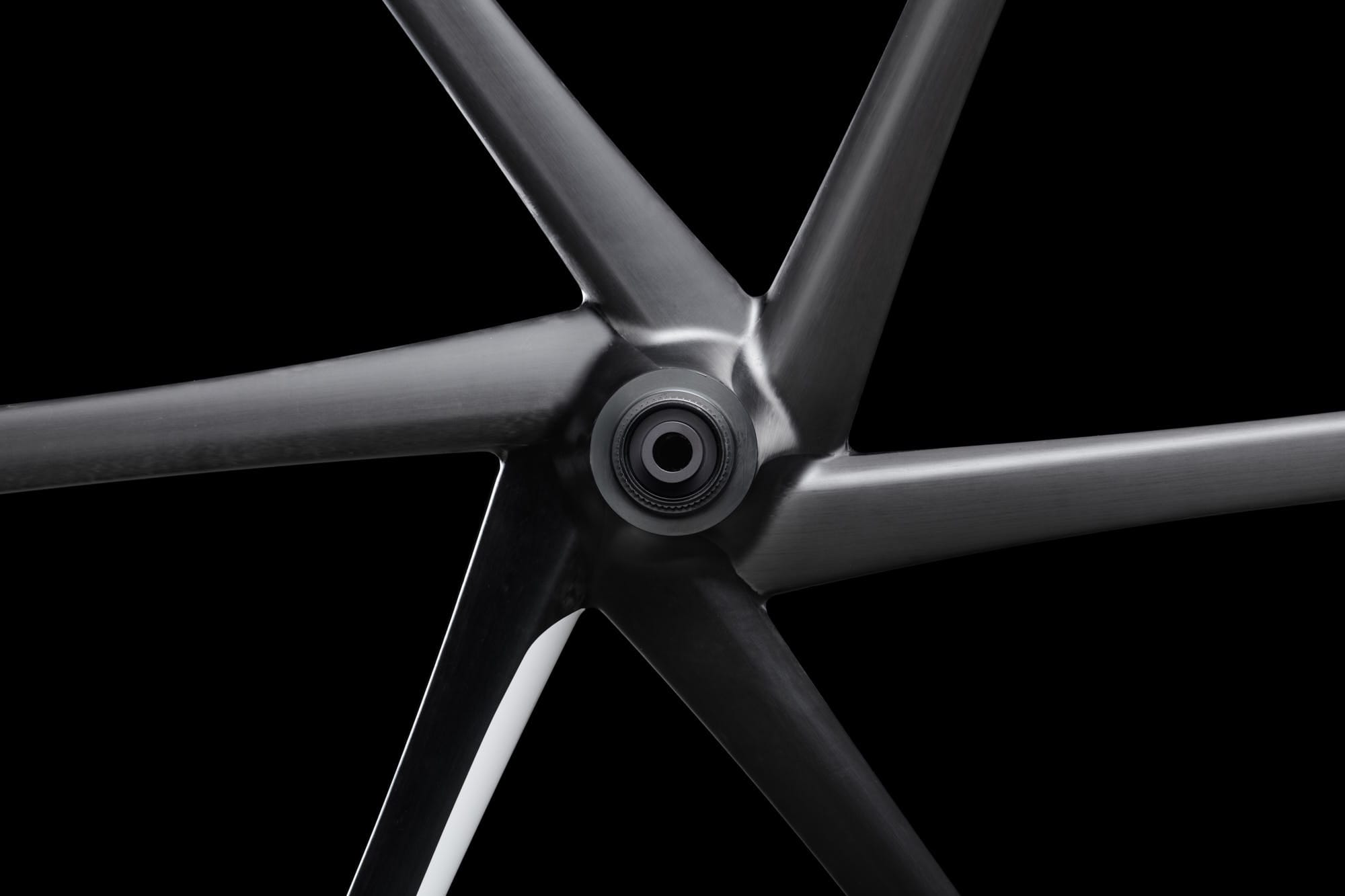 Das leichte Gewicht von 1.450g für den Satz steht für sich, zeigt aber nicht die besonders günstige Massenverteilung bei diesem Laufrad. Wie auch bei unseren anderen Monocoque Laufräder können wir, auf Grund der nicht existenten Zugbelastung von konventionellen Speichen, die Konstruktion so gestalten, dass die Felge sehr leicht ist und die rotierenden Massen im Zentrum des Laufrades liegen.