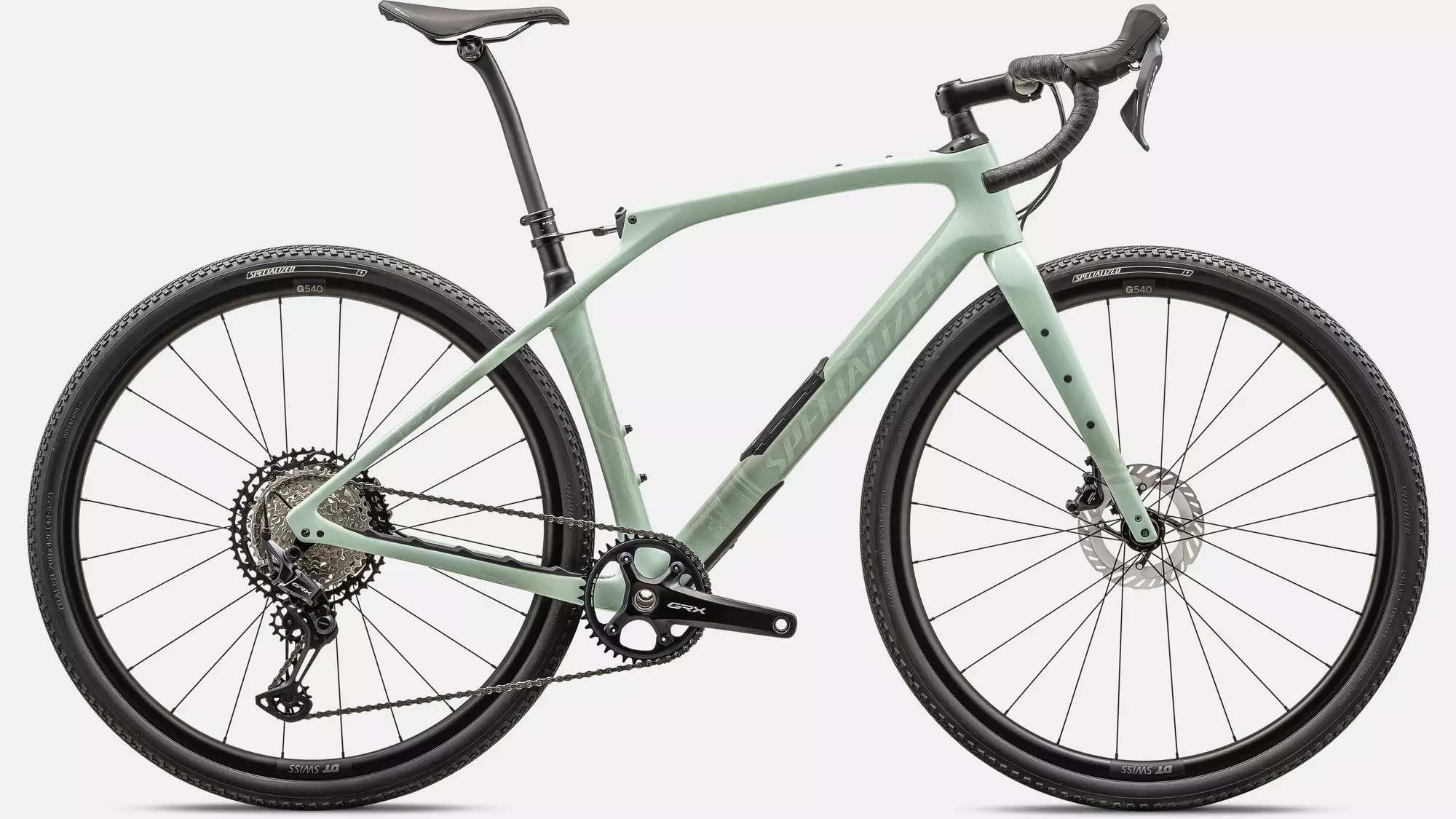 Das Diverge STR Comp baut auf dem Specialized FACT 11r Carbonrahmen mit Future Shock an der Front und am Heck auf. Es ist mit der neuen GRX Komplettgruppe von Shimano für schnelles, effizientes Schalten und einer Kassette mit 10–51 Zähnen ausgestattet. So hat der Rider für jeden Ride die richtige Übersetzung. Das Bike rollt auf DT G540 Laufrädern mit Tracer Pro Reifen in 42 mm Größe. Adventure Gear Aluminiumlenker, eine S-Works Carbon-Sattelstütze und ein Power Sport Sattel runden den Aufbau ab und machen das Diverge STR Comp zu einem enorm leistungsfähigen Gravelbike.