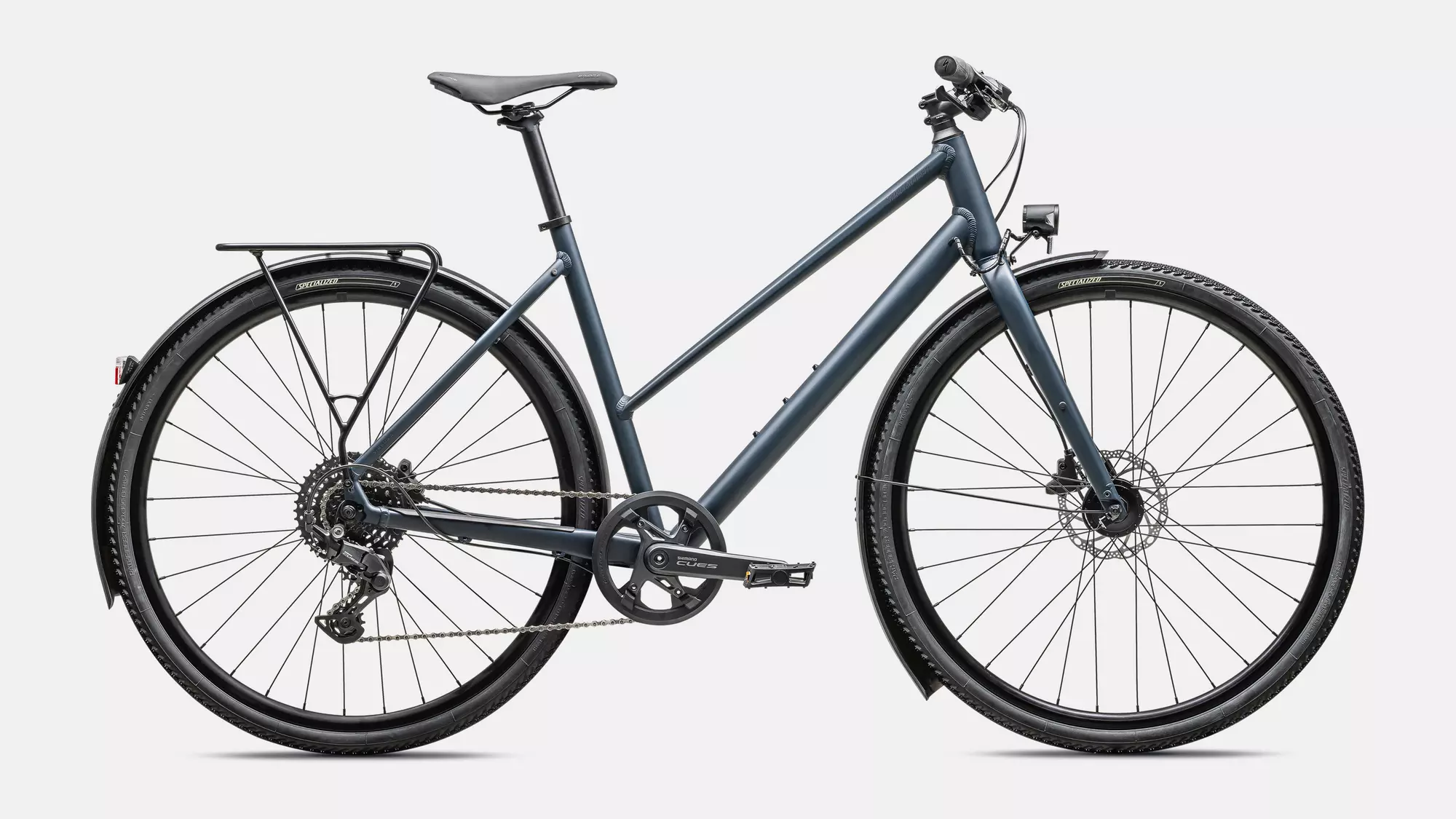 Specialized A1 Premium Aluminum, Fitness Geometry, butted tubing, internal cable routing, flat-mount disc, quick-release, Plug + Play rack/fender mounts